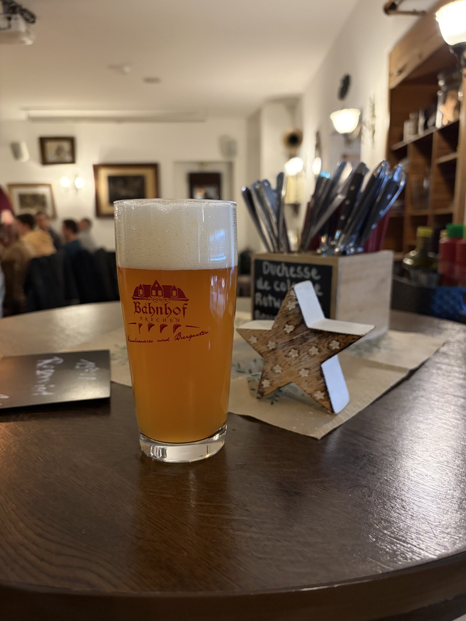 Nachdem die Deutsche Bahn ihren Zugverkehr ausbauen will, haben auch wir im Alten Bahnhof Verstärkung auf die Genuss-Schiene geholt. Endlich sind sie aus Italien geliefert, die 1l-Flaschen mit unserem Logo drauf und (fast noch wichtiger ;-)) mit unseren leckeren Spezialbieren drin. Jeden Monat steht ein neues Bier auf dem Fahrplan. Ideal zum Mitnehmen für daheim 1 Liter Spezialbier gibt es für 6,50 € plus 9 € Pfand, der Maibock kostet 7 € pro Liter. Lasst es Euch schmecken.